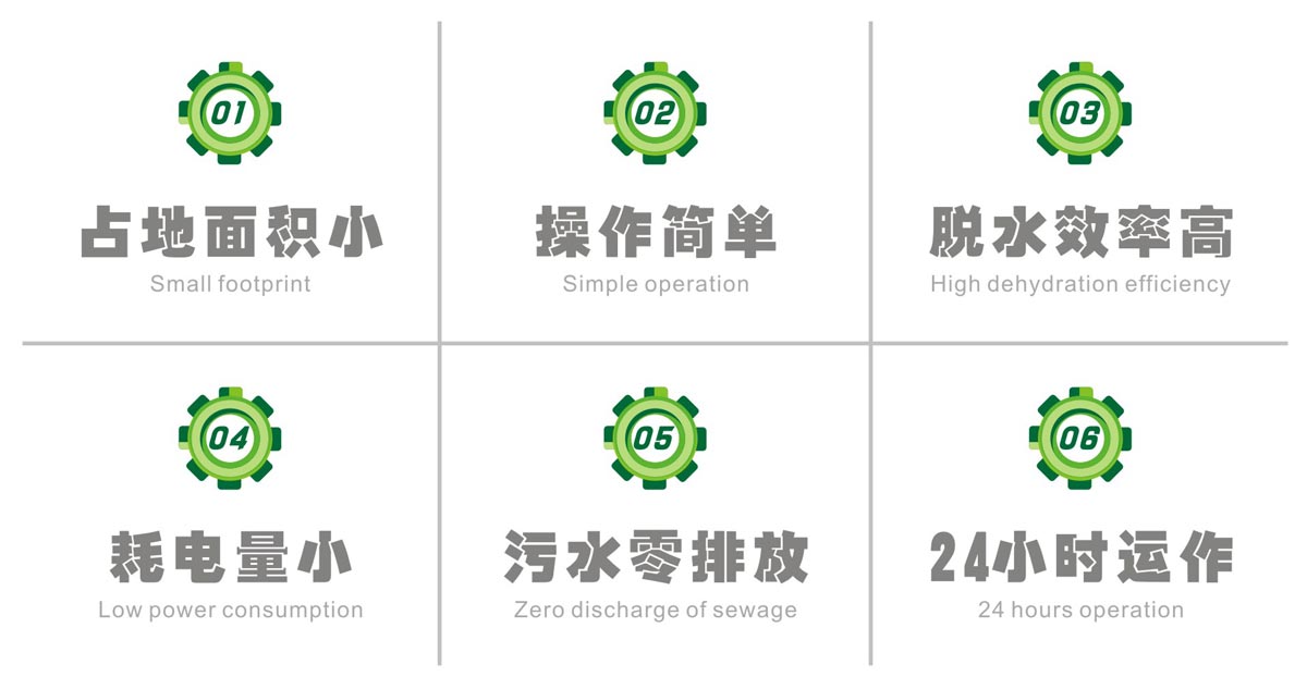 結(jié)構(gòu)設(shè)計(jì)先進(jìn),占地面積小,性價(jià)比好,適合較少輕物料的處理,能耗低,運(yùn)行成本低,效率高,操作維護(hù)簡(jiǎn)單;非常適合小型用戶污泥脫水處理需求,價(jià)格實(shí)惠,脫水效率高。
